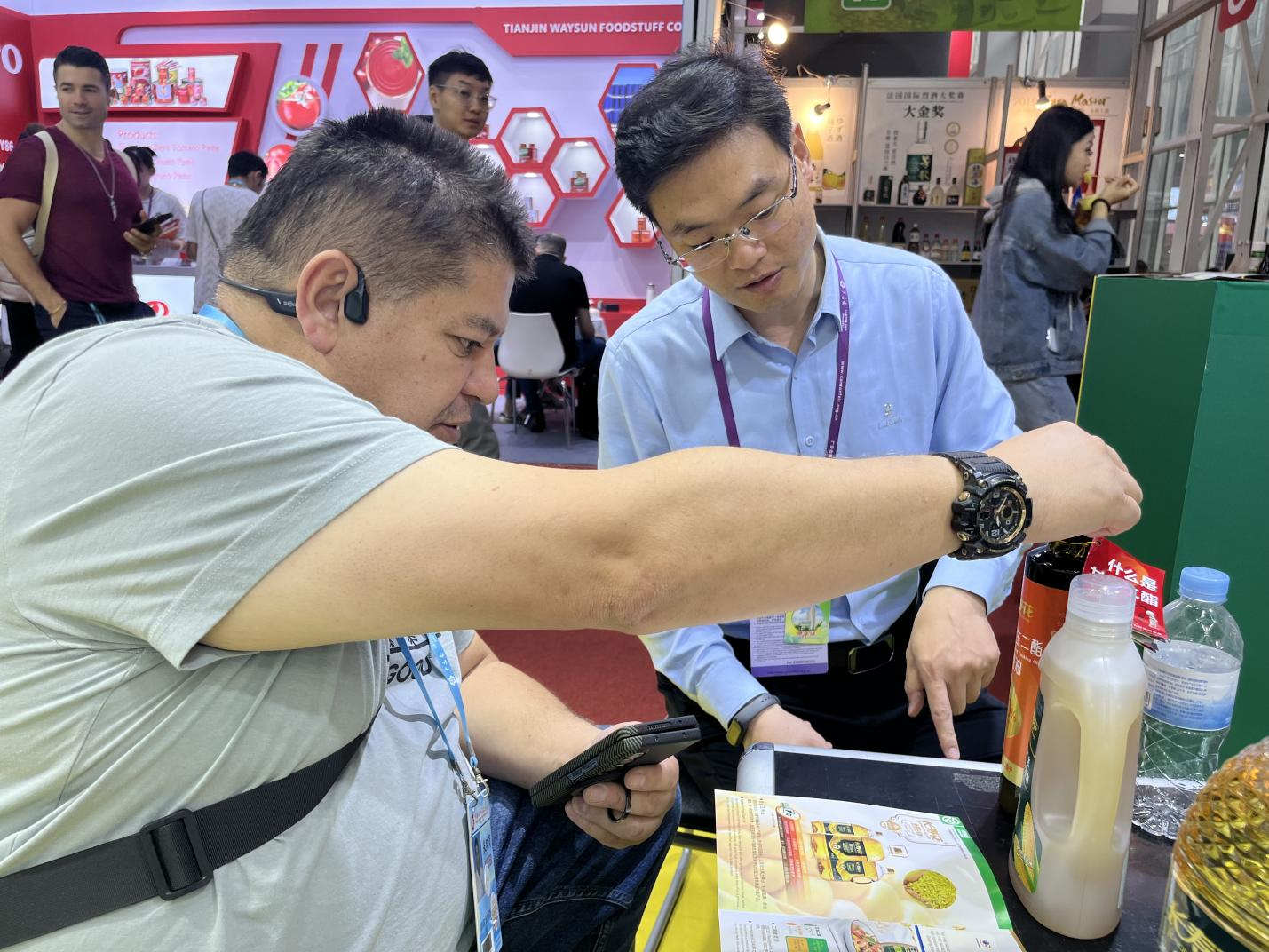 大幕開啟,萬商云集。境外采購商踴躍與會,現場洽談成交活躍。參加過四屆廣交會的歐洲采購商Mr?Ernesto Tovar說:“在廣交會上,我能接觸到很多優秀的中國制造商,它們對產品的投入力度很大,我非常相信中國產品。這次長壽花食品的二酯系列食用油也讓我驚喜滿滿,二酯油吃油不存油,是非常健康的產品”。